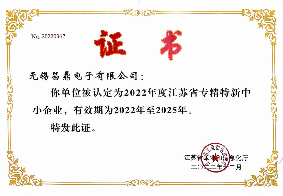 - 2022年-通過“兩化融合管理體系”評定、獲評“無錫市工程技術研究中心”“江蘇省2022年專精特新中小企業”。